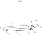 There may be an optional guide or tab provided on theupper frame140,lower frame150, and/or on side surfaces of therollers111,112,121, and122 to keep the left andright belts110 and120 in place and aligned on therollers111,112,121, and122.