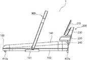 When thehandle300 is folded to a first position, thetreadmill1 may be activated to be in a storage state. Thehandle bottom310 may be parallel to a side of thebase100. In the storage state, various devices (e.g., theblower610,thermoelectric cooling assembly630, and the fragrance assembly500) may be turned off to save power and prevent unintended scents from being emitted. Thephotocatalytic deodorizer622 and sterilizinglights191 and192 described later may be activated in the storage state to deodorize thetreadmill1.