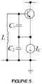 FIG.5 is a circuit diagram of an oscillator that can be used as a VCO in some aspects of the invention. The oscillator comprises a transistor and a positive feedback network that uses inductance and capacitance as an LC oscillator. The inductor may comprise a variable inductor for variable-frequency performance. Alternatively, a variable capacitor (not shown) connected in parallel with the inductor may be employed, or one of the capacitors C1or C2may be variable. In some aspects, a variable capacitor (not shown) may be placed in series with the inductor.