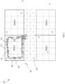 During thedata training phase110, a surveyor may bring a survey device (e.g., thesurvey device102 ofFIG.1) to each of a plurality ofreference points302, represented as black triangles in the illustration. Thereference points302 may be located in generally accessible areas of the venue, such as hallways, concourses, lobbies, etc. In some implementations, a grid may be overlaid over the map of the mall. The grid can be made up of cells. In some implementations, some or all of the cells are square cells having the same or similar dimensions (e.g., between three meters by three meters and ten meters by ten meters, although smaller or larger dimensions can also be used). In some implementations, the grid may be made up of cells of various shapes and sized.