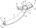 Now referring toFIGS.12 and13, once theinsertion device10 is inserted between theintercostal space202, theproximal end14 of theinsertion device10 may be positioned in thepleural space204 by adjusting theinsertion device10 via thehandles24,26. For example, in some embodiments thesheath body12 may be rotated in order to orient thedistal opening20 of theinsertion device10 in the superior or inferior, anterior or posterior, medial or lateral directions, or a combination thereof. A user may manipulate or orient theinsertion device10 by rotating theinsertion device10 via thehandles24,26. In those embodiments in which theinsertion device10 is oriented about a curvilinear axis, theproximal end16 may be rotated allowing thedistal end14 to be repositioned or translated within thepleural space204. This allows thedistal end14 of theinsertion device10 to be repositioned without having to articulate or pivot theproximal end16 of theinsertion device10 within theintercostal space202, thus preventing additional damage to the tissues located in or near theintercostal space202 and thepleural space204.
