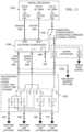 FIG.26B is a wiring diagram showing an embodiment of a strobe module having multifunction light control capabilities installed into a BCM controlled flasher system via modification of a microcontroller.