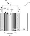 It should be noted that various features ofdevice401 are effectively identical to those ofdevice300 inFIG.3D. Elements ofFIGS.4A,4B, and/or4C having the same reference numerals as elements ofFIG.3D may be considered to be essentially the same elements as their counterparts inFIG.3D. It should be understood that implementations including an insulating layer such as411 need not employ the stack construction depicted inFIG.4A. For example, various implementations do not include a distinction conducting layer108 as shown. Alternatives to use of a distinct ion conducting layer are described in U.S. patent application Ser. Nos. 12/772,055, 12/814,279, and 13/462,725, previously incorporated by reference.