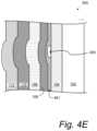 FIG.4A depicts an electrochromic device in which a defect-mitigating insulating layer is disposed between a second (e.g., upper) transparent conductive layer and the later formed of the counter electrode layer and the electrochromic layer.