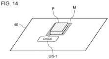 FIG.14 illustrates a situation where a cancel button UI5-1 (fifth interface) is displayed near the product P.