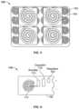 In accordance with the embodiment shown inFIG.18, amulti-layer PCB coil356 is created inseparate PCB layers357, which are then connected358, and manufactured together via common techniques used in PCB fabrication, for example by use of vias and contacts. The resulting overall stack is a thin multi-layer PCB that contains many turns of the coil. In this way, wide coils (low resistance) can be used, while the overall width of the coil is not increased. This technique can be particularly useful for cases where small x-y coil dimensions are desired, and can be used to create higher flux densities and more efficient power transfer.