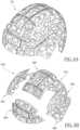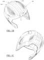 FIGS.28A through28L and29A through29J illustrate various exemplary embodiments of different decorative patterns that may be disposed onto the outer shell, with the decorative pattern optionally include functional openings in the helmet such as vent holes, mounting locations and sound transmission openings; and