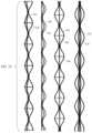 InFIG.7C the orientation and magnitude of bending moments along the assembly's length are shown as force arrows. The distribution of first and/or second order bending moments along a sinusoidal shaped member's length defines its shape and flexural properties. First order bending (pre-stressing) shapes the member's wave; second order bending refers to the possible bending/deformation of the complete assembly. InFIG.7C there is no deformation present. Second-order bending or lateral deflection of the sinusoidal members within an assembly is depicted inFIG.33B-C.