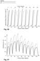 FIGS.63-69 illustrate ligament stiffness data that can be obtained using the above-described methods.FIG.63 illustrates load and stress, versus displacement, for the MCL (solid lines) and the LCL (dashed lines).FIGS.64 and65 illustrate the same data separately for the MCL and the LCL, respectively. The data is plotted for a variety of knee flexion angles. These data may be obtained by using the tensioner-balancer40 with the knee in a variety of flexion angles. Various specific methods are possible. For example in one procedure, the tensioner-balancer may be inserted into a knee in a retracted position, the knee joint J may be positioned at a desired flexion angle, then the tensioner-balancer40 may be extended and data collected. This procedure may be repeated in a variety of flexion angles. Alternatively, the tensioner-balancer40 may be driven byinstrument70 described above to alternate between extended and retracted positions on a preprogrammed time interval. The operator would then move the knee joint J to desired flexion angles when the tensioner-balancer40 was in the retracted position, wait for the tensioner-balancer40 to extended at the preprogrammed interval, allow data be collected by the tensioner-balancer40, and then move the knee joint J to a different flexion angle when the tensioner-balancer40 retracted.