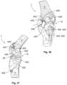 FIG.35 is a perspective view of a human knee joint having a trial endoprosthesis device implanted, in conjunction with a tensioner-balancer;
