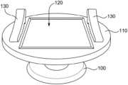 FIG.1B. Top view of trainingtool showing platform110, stage orwork area120 and clamps130.