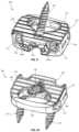In betweenopenings131,134 is anotheropening181A shown inFIGS.12 and14 that extends fromanterior surface102 to an interior surface of graft window116. Opening includes alip109A near the graft window end of the opening. Asecond opening181B of the same shape is located betweenopenings134,137. Disposed within each of these openings is alocking element150A,150B. Each locking element is sized to fit fully and securely within the designated openings within the implant, as shown for example, inFIG.12. The details of the locking elements will now be described. For clarity, only the structure of lockingelement150A is described, but it should be appreciated that lockingelement150B shares the same structural features.