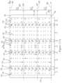 It is also to be appreciated that thebonding elements132 andbonding surfaces133 may be arranged to define repeating patterns along the outercircumferential surface104 of theanvil102. For example,FIG.11A shows a view of an outercircumferential surface104 of ananvil102 laid out flatshowing bonding elements132 arranged to define patterns P at various angular positions from 0° to 360° with respect to the axis ofrotation106. The pluralities ofbonding elements132 withbonding surfaces133 are illustrated as being arranged to define three patterns Pa, Pb, Pc that may extend angularly for various distances along the outercircumferential surface104. Thebonding elements132 andbonding surfaces133 may also be arranged in lanes L1-L9 extending along the outercircumferential surface104. It is to be appreciated that theanvil102 may include more or less than the quantity of patterns P shown inFIG.11A. For the purposes of clarity, dashedlines402 are shown inFIG.11A to represent example boundaries and shapes of patterns P ofbonding elements132 and bonding surfaces133. It is to be appreciated that such boundaries and shapes of the patterns P ofbonding elements132 andbonding surfaces133 can also be curved, angled, and/or straight with respect to each other and/or the cross direction CD.
