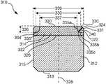 According to various embodiments, as shown inFIG.24,second volume1334 may be formed adjacent tosuperabrasive chamfer1324,superabrasive face1320, andperipheral surface1315, andboundary region1335 may extend fromsuperabrasive face1320 toperipheral surface1315, with a portion ofboundary region1335 extending generally parallel tosuperabrasive chamfer1324 and another portion ofboundary region1335 extending generally parallel toperipheral surface1315.