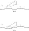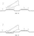 FIGS.7C-7D show partial cross-sectional views of atop case720 that resembles the top case510 (FIG.5B), but has been configured to have a buckling mode. For example, the protrusions may be differently sized, and/or thesides722 of the protrusions may have different dimensions and/or material properties (e.g., different thicknesses, different heights, different radii of curvature, different stiffness) that produce a buckling deformation when pressed, as shown inFIG.7D.