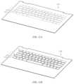 Thekey regions1102 may be retracted (FIG.11A) or extended (FIG.11B) for various reasons. For example, if thetop case1100 is incorporated into a laptop computer (e.g., thedevice100,FIG.1), thekey regions1102 may be extended when the computer is opened (e.g., thedisplay portion102 is rotated up into a viewable position) to allow a user to apply typing inputs. As another example, thekey regions1102 may be extended when thedevice100 is in a text entry mode, such as when a word processor or other application that accepts text input is active on thedevice100. On the other hand, thekey regions1102 may be retracted when the device is closed or closing, which allows the closed device to occupy less space. Thus, because thekey regions1102 can be selectively extended and retracted, they can be extended when the keyboard is in use or potentially in use, thereby providing a superior typing experience, and can be retracted when the keyboard is not in use so that the keyboard assembly occupies less space and the overall size of thedevice100 is reduced.