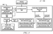 If thecredentials502 are validated, the user (e.g.,person110 ofFIG.1) is authenticated to access standard information andservices512a, according to the “normal operation” flow ofFIG.5. Generally, theauthenticator508 may determine the portion of all available information andservices510 that are included in the standard provided information andservices512a(e.g., based on access privileges of a given user). During normal operation (e.g., before receiving device operation instructions144), a user will generally have access to all appropriate information andservices510 for the user, such that the provided information andservices512aincludesecure information514aandsecure services516a. For the example of anATM device108,secure information514amay include account balances, transaction histories, account numbers, and the like. Still referring to this example, thesecure services516amay include the withdrawal of cash from theATM device108.