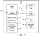 Thememory750 may include a rangingsignal generation module754 that when implemented by the one ormore processors740 configures the one ormore processors740 to generate a ranging signal over the available portion of the wireless spectrum, e.g., as discussed atstages3,5, and7 ofFIG.3 and block504 ofFIG.5. The ranging signal may be a wideband waveform with multiple channels, which may be contiguous or not contiguous. The one ormore processors740 may be configured to generate the ranging signal to include a preamble that indicates a time over which sequentially broadcast ranging signals will occur, e.g., as discussed atstages3 ofFIG.3.