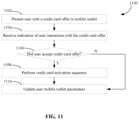 In some arrangements, the customcredit approval circuit138 is configured to generate a credit card that is customized for the mobile wallet user or new user. In this regard, the customcredit approval circuit138 determines at least one user credit preference based on available information pertaining to the user. In some arrangements, user credit preferences include a balance transfer preference. To illustrate, a particular mobile wallet user may have a checking account at the financial institution, and a credit card at another financial institution. The user may use the checking accounts to make payments on the credit card, and a record of such payments may be stored in the financial institution accounts database. Based this stored information, or information contained in a credit report received from a credit bureau, the customcredit approval circuit138 may offer to transfer the balance of the user's old credit card to the new credit card associated with the offer at a particular interest rate over a particular time period (e.g., 0% APR for 18 months).