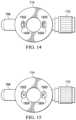 FIG.14 is a proximal end view depiction of an embodiment of the cannula invention highlighting penetrations into which a biasing device may be inserted;