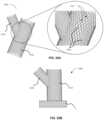 Referring now toFIGS.22A and22B,tube device1500 includesmain tube1510 in the form of a trunk andsecondary tube1520 intersecting the main tube in the form a branch extending from the trunk. The tube device may be but is not limited to being part of a vascular stent on a microscale or a garden hose on a larger scale.Tube device1500 is porous, although the device may be coated, e.g., by a drug-eluting stent coating or a plastic coating, or may be covered, e.g., by a thin plastic sheath. In some arrangements, the coating or covering may substantially conform to the outer surface of the tube device.