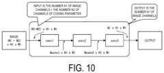 In the image filtering apparatus according toAspect 10 of the disclosure (CNN filters107,305) inAspects 1 to 8 described above, the neural network may include a unit configured to receive an input of first type input image data of the one or multiple first type input image data having a pixel value of a luminance and second type input image data of the one or multiple second type input image data, and output first type output image data having a pixel value of a luminance, and a unit configured to receive an input of first type input image data of the one or multiple first type input image data having pixel values of a first chrominance and a second chrominance, and second type input image data of the one or multiple second type input image data, and output first type output image data having pixel values of a first chrominance and a second chrominance.