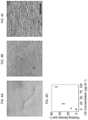 FIGS.6A-6F show SEM images of nanotubes deposited at non-aqueous CNT dispersion volumetric flow rates of 0 (FIG.6A), 1 (FIG.6B), and 4 (FIG.6C) mL min−1with local director orientations superimposed as dark segments, determined via local two-dimensional fast Fourier transform (FFT) analysis. Fourier transform window size for each local analysis was 20 pixels, or the length of each dark segment. Scale bars are 1 μm.FIGS.6D-6F show additional SEM images and FFT analysis.