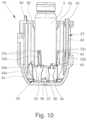FIG.9 a schematic section of the nebulizer according toFIG.6 in the completely closed state with opened securing device so that the container can move axially;