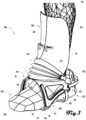 In another embodiment, a boot or shoe can comprise a segmented structure that comprises a system of rigid panels connected by a flexible joint (e.g., an elastomer) that allows for in-plane rotation, (e.g., “in the plane” can include where the ankle rotates towards and away from the shin), and/or lateral motion. In a further embodiment, a structure in the heel of a shoe or boot can be configured to provide a load path for a reaction force that acts to lift theheel107 of theuser101.