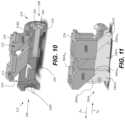 With reference now toFIGS.5A and5B, the interaction offirst element110 and thethird element170 will be described in greater detail. For discussion purposes only, thesecond element140 has been removed. Additionally, while this discussion considers only asingle side member180D, this discussion also applies to other side members180 of thethird element170. As depicted,side member180D includesprotrusions184D and depressions186D, theprotrusions184D defining correspondingsurfaces184DS1-S3. Thefirst element110 includesprotrusions124B and depressions126B on the inner surface ofside portion118. Protrusion124B1 includes a surface124B1S, and protrusion124B2 includes a first surface124B2S1and a second surface124B2S2,surface184DS1interfacing with surface124B1Sandsurface184DS2interfacing with surface124B2S1, such that a portion ofside member180D is able to move within and along depression126B1.Side member180D also defines asurface184DS3that, along with surface184CS1of side member184C, interfaces with corresponding surfaces ofsecond element140, as discussed below with reference toFIG.6.