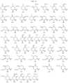 Examples of central core small mimetics of a beta-turn, beta turn inducers, reverse turn mimetics and foldamer monomers include, but are not limited to the structures ofFIG.5.