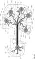 Furthermore, referring toFIG.23B, the axon-like interconnect482 may be considered as a scheme or structure of a tree including (i) a trunk or stem connecting to the first one LB1 of the logic blocks201, (ii) multiple branches branching from the trunk or stem for connecting its trunk or stem to one of the second and sixth ones LB2-LB6 of the logic blocks201, (iii) a first one379-1 of thecross-point switches379 set between its trunk or stem and each of its branches for switching the connection between its trunk or stem and one of its branches, (iv) multiple sub-branches branching from one of its branches for connecting said one of its branches to one of the fifth and sixth ones LB5 and LB6 of the logic blocks201, and (v) a second one379-2 of thecross-point switches379 set between said one of its branches and each of its sub-branches for switching the connection between said one of its branches and one of its sub-branches. The first one379-1 of thecross-point switches379 may be provided in one of the DPIIC chips410 in the first one300-1 of the logic drives300, and the second one379-2 of thecross-point switches379 may be provided in one of the DPIIC chips410 in the second one300-2 of the logic drives300. Each of the dendrite-like interconnects481 may include (i) a stem connecting to one of the first through sixth ones LB1-LB6 of the logic blocks201, (ii) multiple branches branching from the stem, (iii) across-point switch401 set between its stem and each of its branches for switching the connection between its stem and one of its branches. Each of the logic blocks201 may couple to multiple of the dendrite-like interconnects481 composed of theinterconnection metal layers6 of theFISC20 and the interconnection metal layers27 of theSISC29. Each of the logic blocks201 may be coupled to a distal terminal of one or more of the axon-like interconnects482, extending from others of the logic blocks201, through the dendrite-like interconnects481 extending from said each of the logic blocks201.