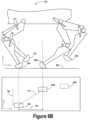 Further, different types of robots may use different gaits due to differences in design that may prevent use of certain gaits. Although some gaits may have specific names (e.g., walk, trot, run, bound, gallop, etc.), the distinctions between gaits may overlap with some gaits having slight variations. The gaits may be classified based on footfall patterns, also known as the locations on the ground surface for the placement the feet206a-206d. Similarly, gaits may also be classified based on mechanics. One or more systems of therobot200, such as thecontrol system118, may be configured to operate the legs204a-204dto cause the robotic200 to move. Additionally, therobot200 may include other mechanical components, which may be attached to therobot200 at various positions. Therobot200 may include mechanical arms, grippers, or other features. In some examples, the legs204a-204dmay have other types of mechanical features that enable control upon various types of surfaces that the robot may encounter, such as wheels, etc. Other possibilities also exist.