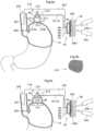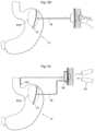 FIG.42 shows a flowchart describing the steps needed in an intraluminar method of inserting a device for stretching a portion of the stomach wall, the method comprises the steps of inserting an instrument into theesophagus203 of the patient, step1a, inserting a device into the stomach of the patient through theesophagus203 using the instrument, step2a, placing thedevice10 in contact with thestomach wall12, step3a, fixating the device to thestomach wall12 such that the device can stretch a part of thestomach wall12. The method described could further comprise the step of non-invasively regulating the device after the placing of the device has been completed.