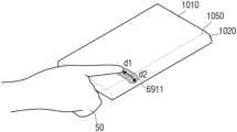 Further, as illustrated in6540 ofFIG.65, when the user touches thesecond interaction guide6514 within thefirst sub area1020 with their middle finger, thecontroller200 executes the multi window function to divide the screen displayed on themain area1010 into a plurality of screens.6550 ofFIG.65 illustrates displaying the screen when the multi window function is performed. As illustrated in6550 ofFIG.65, thecontroller200displays boundary line6553 on a position corresponding to the point which a user touches and lifts off, and displays twodifferent screens6551,6552 with each other on each side of theboundary line6553, respectively. The user may touch theboundary line6553 again and modify the position.