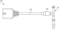 Thesensor100 includes aplug120 that is configured to be connected to a patient monitoring system, such as the one shown inFIG.1. Thesensor100 also includes acable122 that connects theplug120 to thebody102 of thesensor100. Thecable122 includes a plurality ofwires124 that connect various parts of theplug120 toterminals126 disposed on thebody102. The flexible circuit is disposed in thebody102 and connects theterminals126 to theLED104 and thedetector106. In addition, one of theterminals126 connect a ground wire to the flexible circuit.