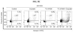 FIG.5E shows the percentage of apoptotic cells measured by flow cytometry of SW1353 cells stained with Annexin-V and PI after treatment with vehicle, TC-S7009, cisplatin, or TC-S7009 and cisplatin in combination.