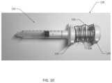 Referring toFIG.10, in an embodiment,spring126 includes awrap125, such as a flexible plastic wrap, flexible cloth wrap, etc. In various embodiments, thewrap125 may cover thespring126 to prevent a portion of thespring126, or theentire spring126, from environmental exposure. For example, thewrap125 may cover the entire exterior circumference and length ofspring126, such that thewrap125, theretainer ring122, and thecap124 form a compressible cylinder, withspring126 disposed inside the compressible cylinder.Wrap125 illustrated inFIG.10 is semi-transparent, to illustrate thespring126 disposed inside. In various embodiments, wrap125 may be transparent, semi-transparent, or opaque.