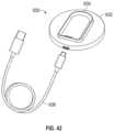 Referring now toFIG.42, chargingsystem600 suitable for use with the pumps of the present invention is described and may be used to charge one or more batteries within the pump. Preferably, chargingsystem600 charges the battery via an inductive coil disposed within the housing ofcharger602 and the pump.Charger602 may be plugged into a conventional socket. viacable606 or a cord with an AC or DC power converter.Charging system600 also may includecharger support frame604, which is configured to hold the pump while charging.Charger support frame604 may be have a similar size and shape as the pad skeleton.