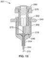FIG.13 is a section view of the proximal end of the system ofFIG.8 after deploying the curveable cannula into the body.