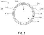 FIG.10 illustrates a perspective view of an examplelumen closing member822 in a relaxed state. One or more of the components described herein with respect toFIG.10 may be used with any other embodiments described herein including the embodiments described with respect toFIGS.1-9 and11-21 provided herein. As shown inFIG.10, thelumen closing member822 may be relaxed or in a relaxed state or relaxed position so that a surface of thefirst slab902 contacts and seals with a surface of thesecond slab904 closing or eliminating at least a portion of thelumen910. Once thelumen closing member822 relaxes so that the surface of thefirst slab902 contacts and seals with the surface of thesecond slab904, thefirst slab902 and thesecond slab904 may not be pulled apart again to form thelumen910. For example, the surface of thefirst slab902 and the surface of thesecond slab904 may not be pulled apart again to form thelumen910 or may be permanently engaged due to at least one of a natural tendency of thefirst slab902 and thesecond slab904 to bias towards a flattened state to contact and seal against each other, an adhesive on at least one of the surface of thefirst slab902 or the surface of thesecond slab904 holding each other together once the surfaces are in contact with each other, an external force provided by one ormore members828 that are exposed to thespace912 and hold and seal the surface of thefirst slab902 against the surface of thesecond slab904 once the surfaces are in contact with each other, or the like.