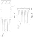 FIGS.3E-3F show laser patterns for thesystem100B ofFIGS.3A-3D. As shown inFIGS.3E-3F, in some embodiments, thestruts19B can be tapered across their width from proximal to distal along their length, i.e., from right to left inFIGS.3E-3F. Laser cuts can be made non-normal to the longitudinal axis, which can create a helical or spiral pattern in various arrangements.