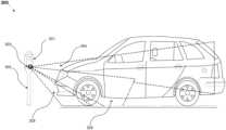 FIG.3 depicts an exampleparking space geometry300 with the occupancy andvehicle identification sensors303 integrated with aparking meter301 and mounted on apole302. Vehicle occupancy sensing beams305 with fields of view designed to encompass the zone of interest and a separate vehicle identification field ofview304 designed to target an in-vehicle device are shown.