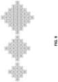 FIG.9 shows examples of geometric adaptive loop filtering (GALF) filter shapes (left: 5×5 diamond, middle: 7×7 diamond, right: 9×9 diamond).