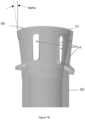As illustrated, the number of potting tool segments and fingers is six. However, it can be appreciated that other numbers of potting tool segments and fingers are also possible. As illustrated, all of these features are distributed at equal angular intervals around the circumference of the fiber bundle. Such symmetry may be advantageous in achieving a uniform and rapid transition to a uniform axial flow where the axial component of the velocity vector is more than 70% or preferably more than 90% of the overall velocity vector, and the distribution of flow in the fiber bundle is substantially uniform. However, it can be understood that other patterns of positions of the potting tool fingers are also possible and symmetry is not essential.