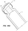 Referring back toFIGS.8H and8I, the syringe body (34), such as one constructed from a glass material, may comprise a Luer taper or Luer slip on one end for attachment of the staked needle assembly, such as the staked needle coupling assembly (606) described above. In an alternate embodiment, a cartridge syringe body may be utilized which has a glass flange configuration, similar to that on a medicine vial, which consists of a rubber seal and an aluminum crimp (72,FIG.16A) to seal the medicine inside the glass cartridge (71,FIG.16A). With such an embodiment, a needle configuration similar to that shown inFIG.81 may be snapped over the glass flange to seal the medicine in the cartridge; the aluminum crimp may be replaced with a plastic needle housing.