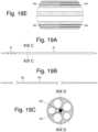 Providing a plurality of different possible electrode configurations permits selection of sets of electrodes to be used for nerve stimulation in an individual. Usingproximal electrodes36 as an example, electrode pairs may be arranged in a straight line (e.g., alongcircumferential line138 as inFIG.20A), staggered (e.g.,FIG.20B), or angled (e.g.,FIG.20c) along a circumference of thecatheter10 to ensure that the nerves may be effectively stimulated. Referring toFIG.20A, thecircumferential line138 may pass through (or over) the center of two electrodes, or thecircumferential line138 may pass through (or over) other portions of the two electrodes (e.g., the pair of electrodes may be slightly offset). Referring toFIG.20B, staggered electrode pairs may be arranged such that the longitudinal distance (along a proximal-distal line parallel to the longitudinal axis of catheter10) between longitudinally adjacent electrodes (such as betweenelectrodes18aand18b), is approximately equal to the longitudinal distances between other pairs of longitudinally adjacent electrodes, such as18band18c. Referring toFIG.20C, angled pairs of electrodes may be arranged such that planes passing through the center of the pairs of electrodes do not form a right angle with respect to the longitudinal axis of thecatheter10. Thus, the staggered electrode embodiment ofFIG.20B is a subset of the angled electrode embodiment ofFIG.20C, and the embodiment ofFIG.20A in which acircumferential line138 passes through or over non-center portions of electrode pairs also may be considered to include angled electrode pairs. The electrode configuration may be varied along thecatheter10 to account for the anatomical differences found among different patients. Selecting appropriate electrode pairs can provide effective nerve stimulation despite these differences.