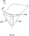 FIG.35 is another variation of adevice670 for collecting bodily fluids from a patient during and after childbirth prepared in accordance with certain aspects of the present disclosure, where a collection bag672 has a stiffening orrigid component674 on aback side676 of the second collection bag672, which makes avisual volume indicator678 more visible to a user of thedevice670. In such a variation, the bag672 may have a high diameter.