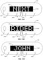 FIGS.11A-11C illustrate an exemplary provider communication device showing an animation including requestor information based on a requestor information sequence in accordance with embodiments of the present techniques. For example,FIGS.11A-11C show arear display163 of aprovider communication device160 displaying different portions of an animation1166 including requestor information.FIGS.11A-11C show threedifferent phases1165A-1165C of an animation1165 that informs the requestors in the vehicle of the next destination location that is going to be associated with a particular requestor. For instance, the animation across the three phases may state “Next Rider John” where the requestor information includes the requestor's first name, e.g., “John.” The animation message including “Next Rider” may be the same for all requestors but the animation may incorporate the requestor information for the last portion or phase of the animation. Additionally, any number of different animations may also be presented with any number of different messages, videos, sounds, images, etc. Moreover, any number of different requestor information may be used. For example, the requestor information may include a destination address, a picture, an image, a pattern, a color, a video, or a gif selected by the various requestors and stored in their profile information in the requestor information data store. The animation may scroll across the screen in any direction, may flash, and/or may perform any other suitable action to get the attention of the requestors and let them know which requestor destination is associated with the next destination.