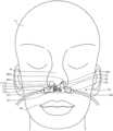 The firstgas supplying portion131 is configured by a fluid path for supplying a gas to the nasalexpiration collecting portion11. The firstgas supplying portion131 is disposed on the left side as viewed toward the face of the human body. In the same or similar manner as the firstgas supplying portion131, also the secondgas supplying portion132 is configured by a fluid path for supplying a gas to the nasalexpiration collecting portion11. The secondgas supplying portion132 is disposed on the right side as viewed toward the face of the human body.